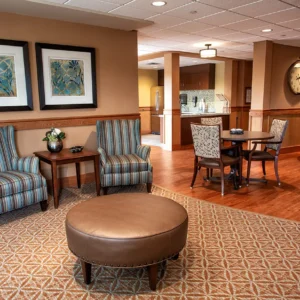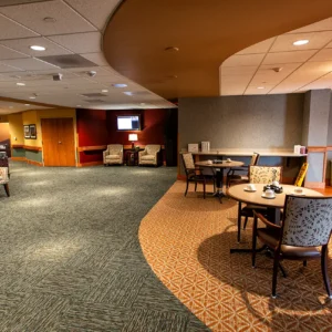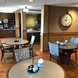 Meals and refreshments are served in the Transitional Care Dining Room and patients are encouraged to enjoy their meals in the dining room. A spacious lounge on the TCU allows family members and friends to visit with patients in a comfortable setting on the Transitional Care Unit.
